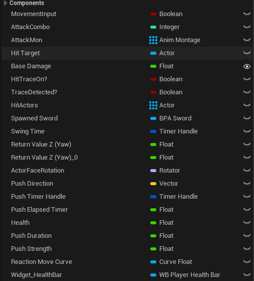 The gameplay layer was built around a readable attack flow that starts with animation timing and resolves through hit detection, damage application, and enemy response. Combat windows are controlled so traces only activate during intended swing moments, helping every attack feel deliberate rather than noisy or inconsistent.