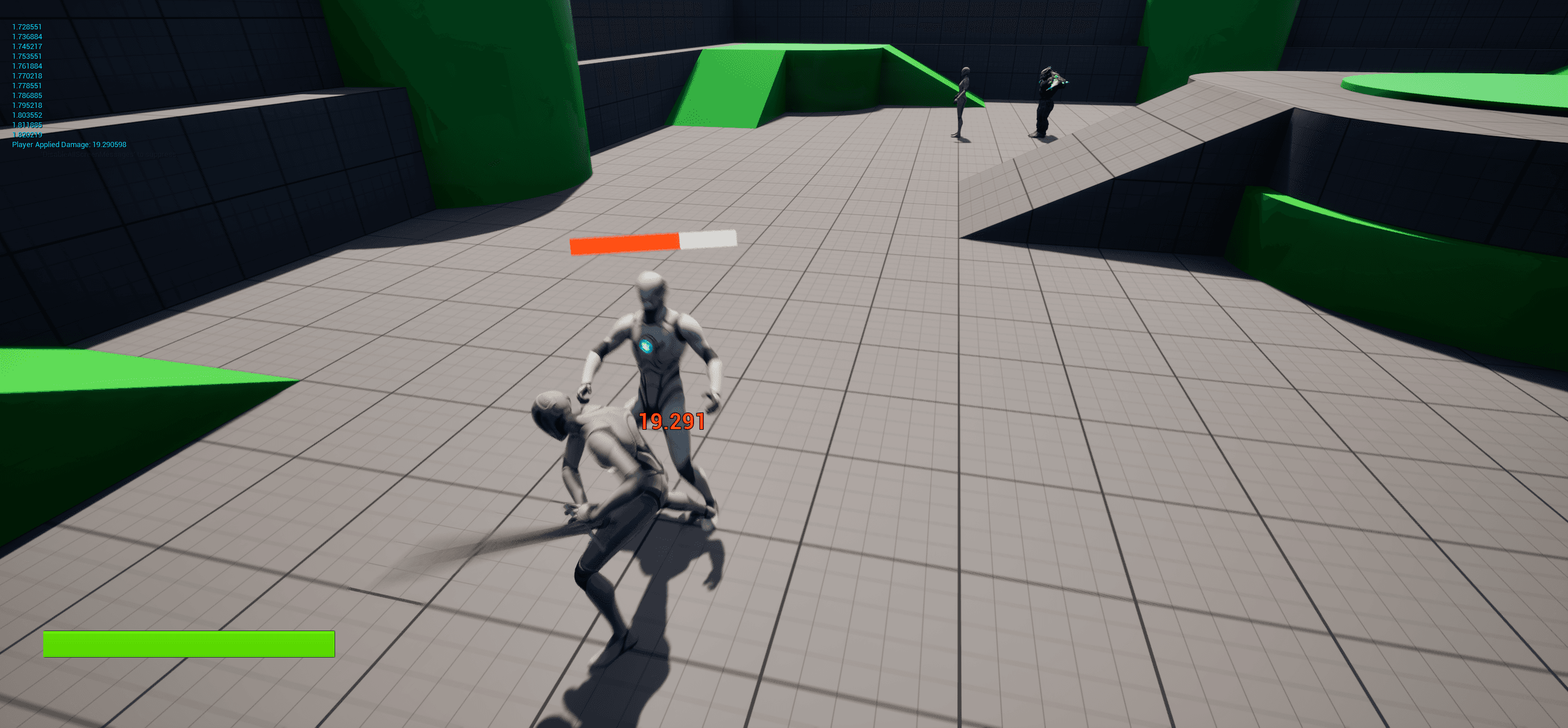 The prototype was built in Unreal Engine 5 using Blueprints as the primary gameplay scripting layer, allowing the combat loop to be structured around readable event-driven logic. Player attacks, damage application, reactions, and state updates are all coordinated through interconnected systems that prioritize responsiveness and clean handoff between actions.